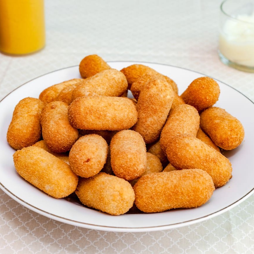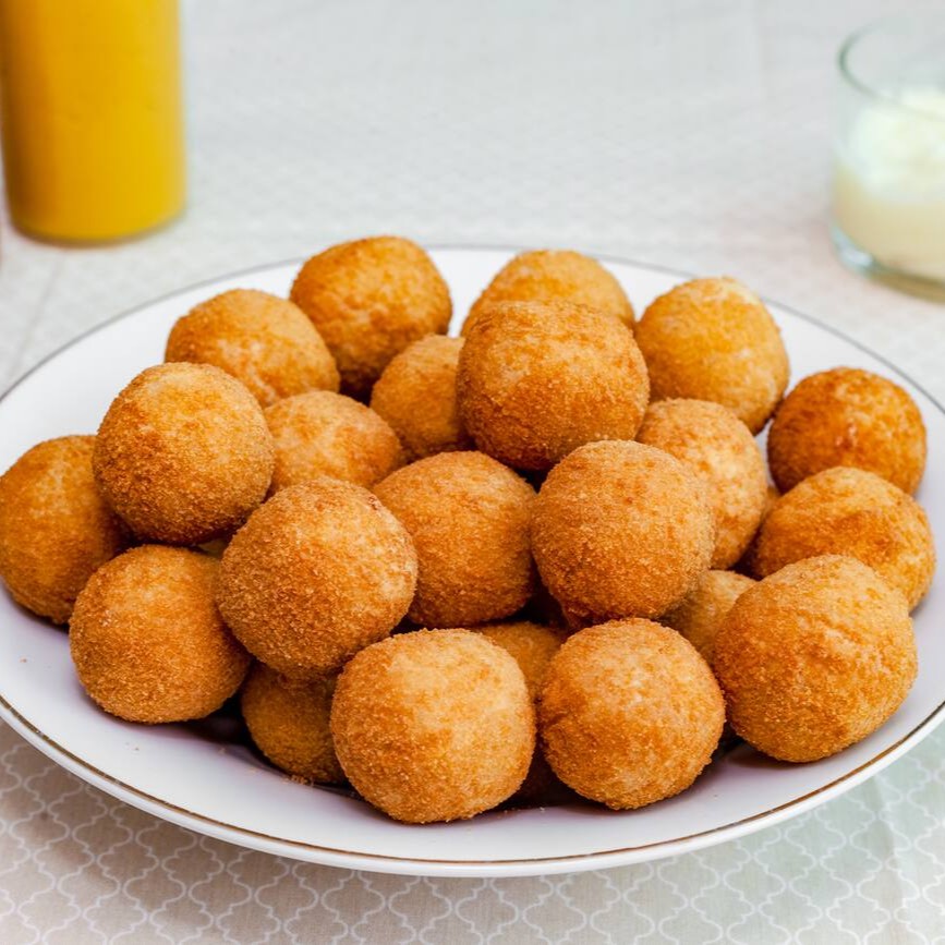 Irresistível bolinho de queijo com casquinha crocante e interior cremoso de queijo derretido. Um clássico que agrada todas as idades.
