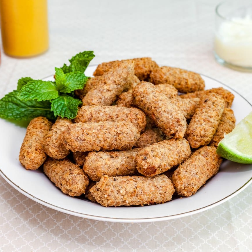 Kibe sem carne feito com trigo mais grosso, bem temperado e saboroso, frito até ficar crocante por fora, macio por dentro. Uma opção vegetariana cheia de sabor!