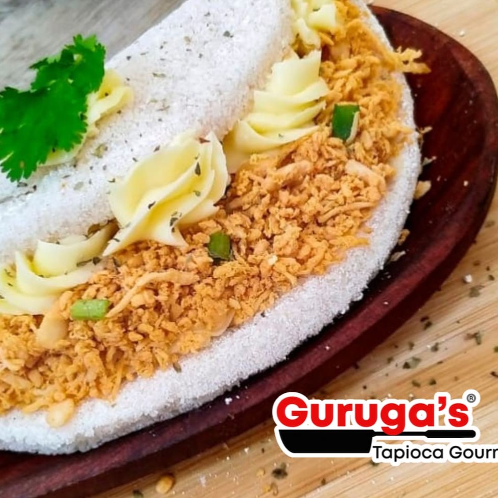 Uma combinação irresistível! Nossa massa de tapioca levinha e crocante abraça um recheio generoso de frango desfiado bem temperadinho, envolvido na cremosidade da muçarela derretida. Uma explosão de sabor caseiro em cada mordida!