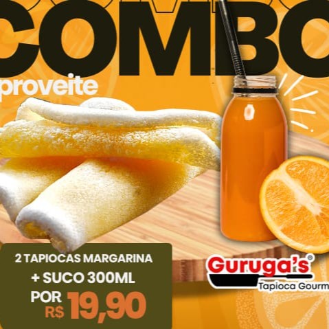 2 Tapiocas Margarina + Suco 300ml Laranja