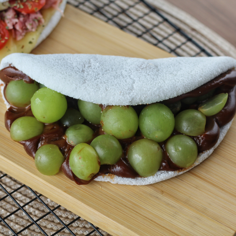 Combo 3 - 1 Tapioca Bauru + 1 Tapioca De Brigadeiro Com Uvas Verdes + 1 Coca Cola Lata 350ml