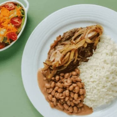 Contra Filé Acebolado Com Arroz, Feijão E Farofa