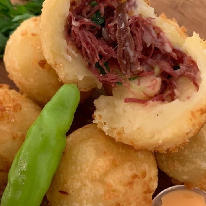 6 Unidades de Bolinhos de Carne Seca Com Catupiry na Massa de Mandioca Fritos na Hora