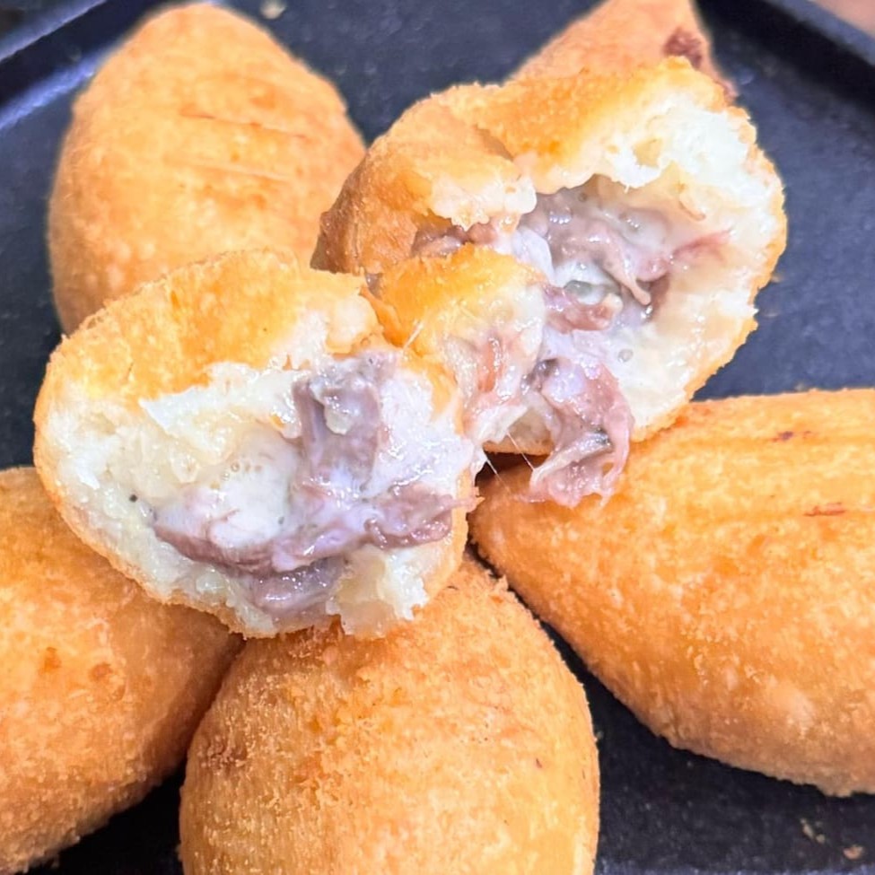 6 Unidades de Bolinhos de Costela Defumada Com Provolone na Massa de Mandioca Fritos na Hora