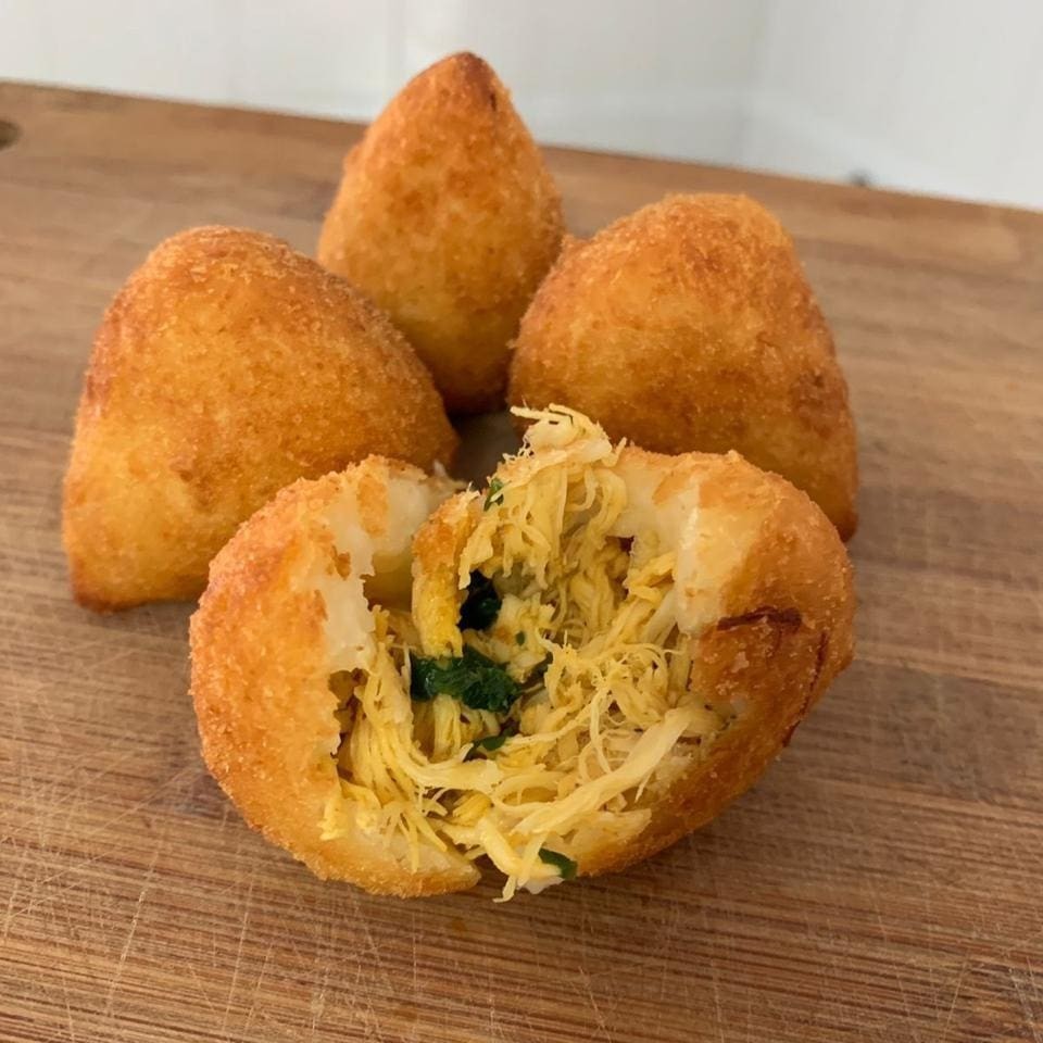 6 Unidades de Coxinha de Frango Defumado com Catupiry na Massa de Batata Fritas na Hora