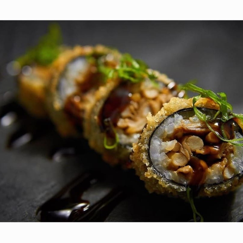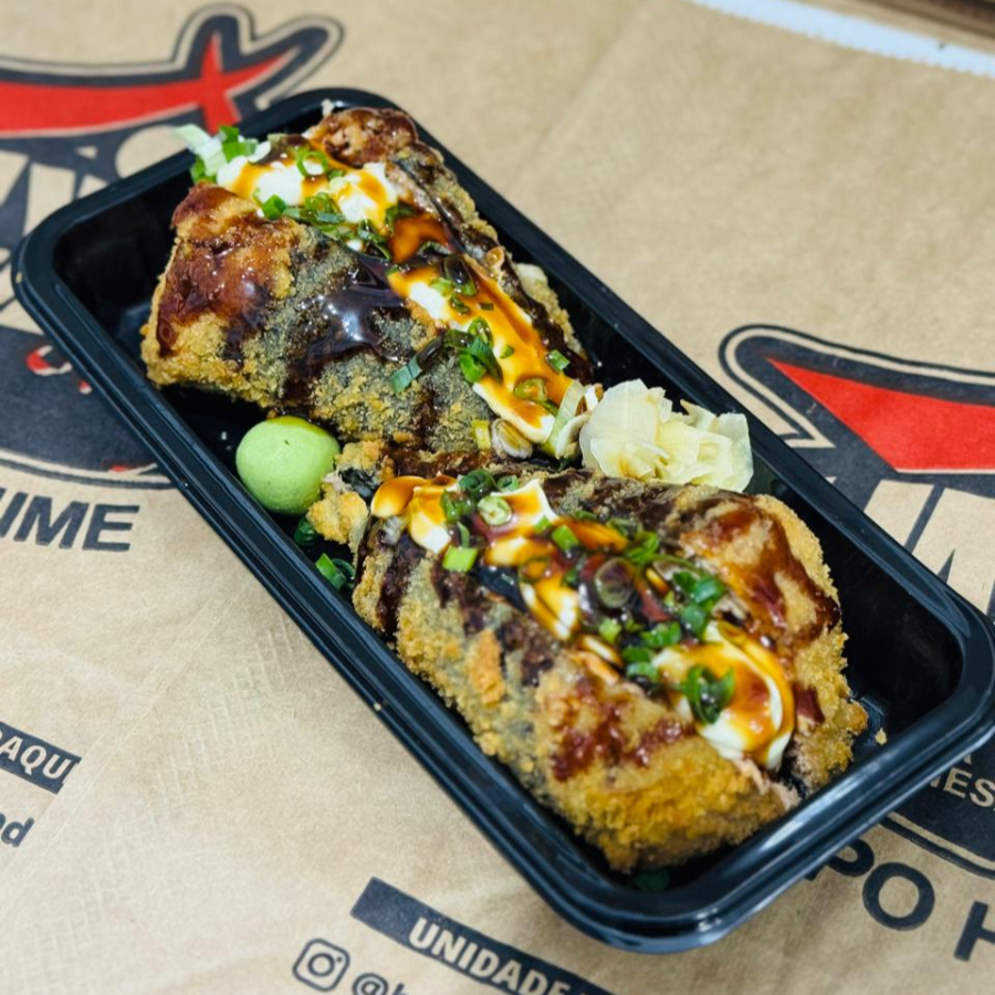 Temaki todo empanado, completo com arroz! cream cheese e cebolinha
