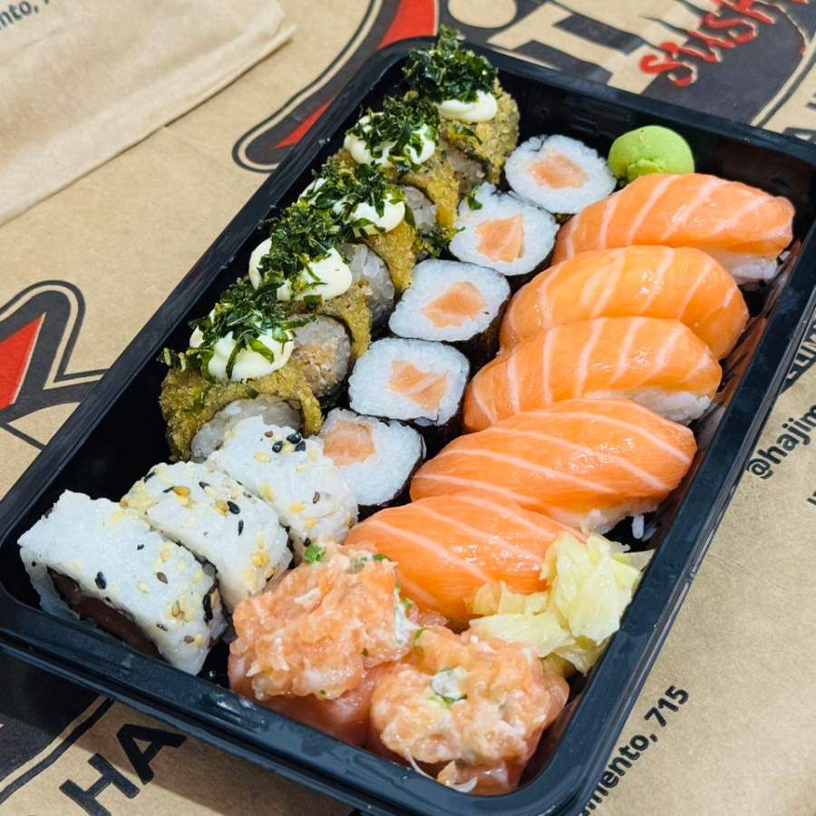 06 Sashimi Salmão - 04 Niguiri Salmão - 04 Joe Salmão - 06 Hot-Rolls