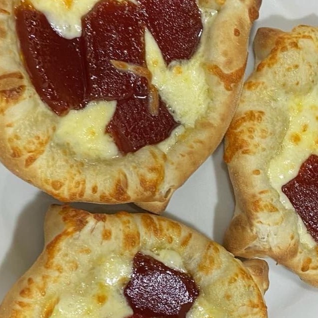 Deliciosa esfiha de massa fofinha recheada de mussarela de qualidade com goiabada.