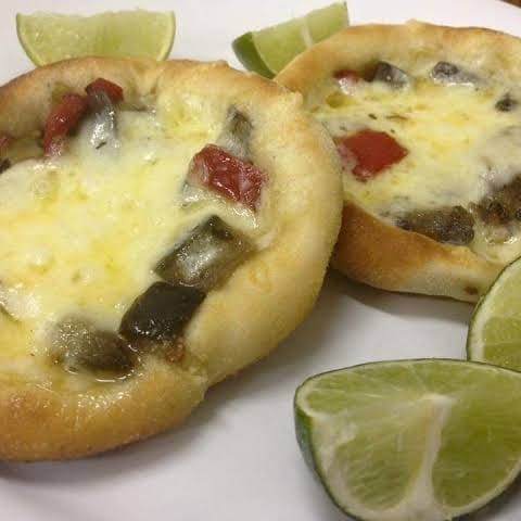 Deliciosa esfiha de massa fofinha de beringela defumada de forma artesanal coberta com mussarela.