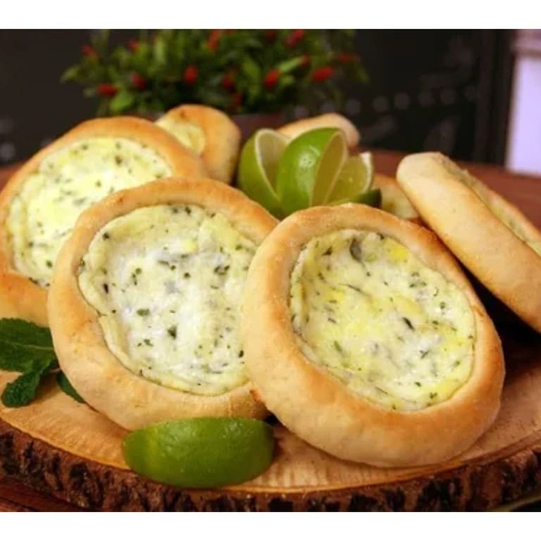 Massa fininha levemente adocicada recheada de forma generosa com ricota cremosa temperada a moda árabe. Um convite a leveza no paladar.