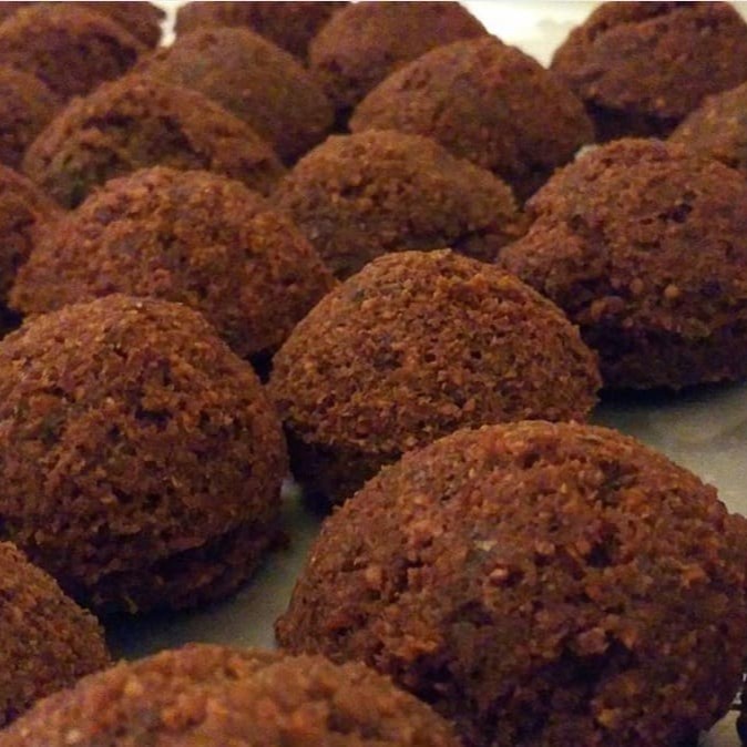 Bolinhos crocantes de grão de bico finamente temperados e fritos , acompanha um delicioso molho de alho artesanal.