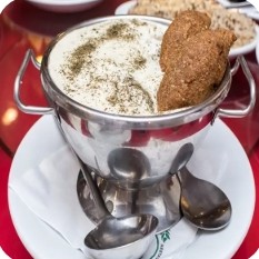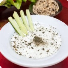 Coalhada fresca temperada com alho, hortelã seca e pepino