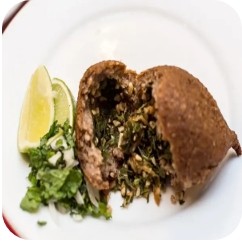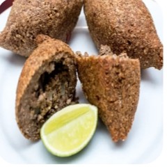 Kibe recheado com hortelã, salsinha, cebolinha e carne bovina
