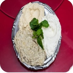 Babaganouch e coalhada seca ou babaganouch e hommos ou hommos e coalhada seca