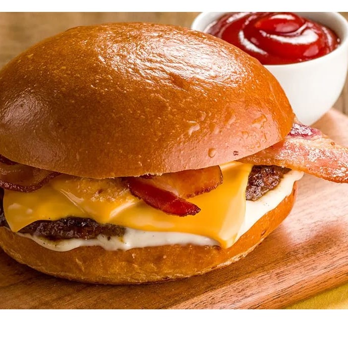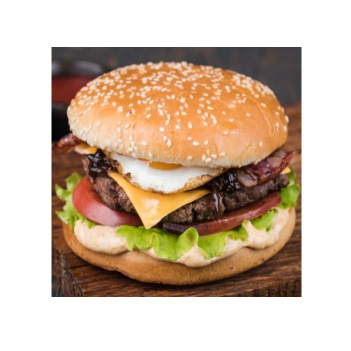 Pão para hambúrguer+ hambúrguer + queijo + ovo +bacon
