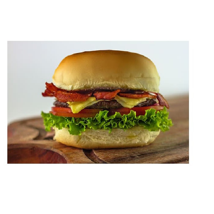Pão para hambúrguer + hambúrguer artesanal + queijo + bacon+ alface e tomate