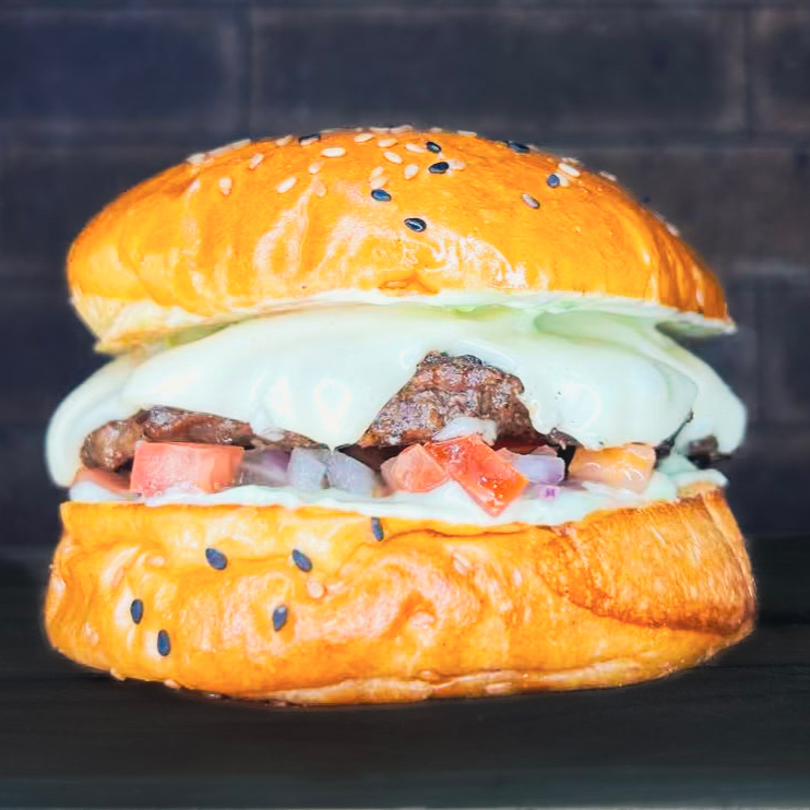 Pão de Gergelim, hambúrguer 150g, vinagrete, mussarela e molho especial da casa