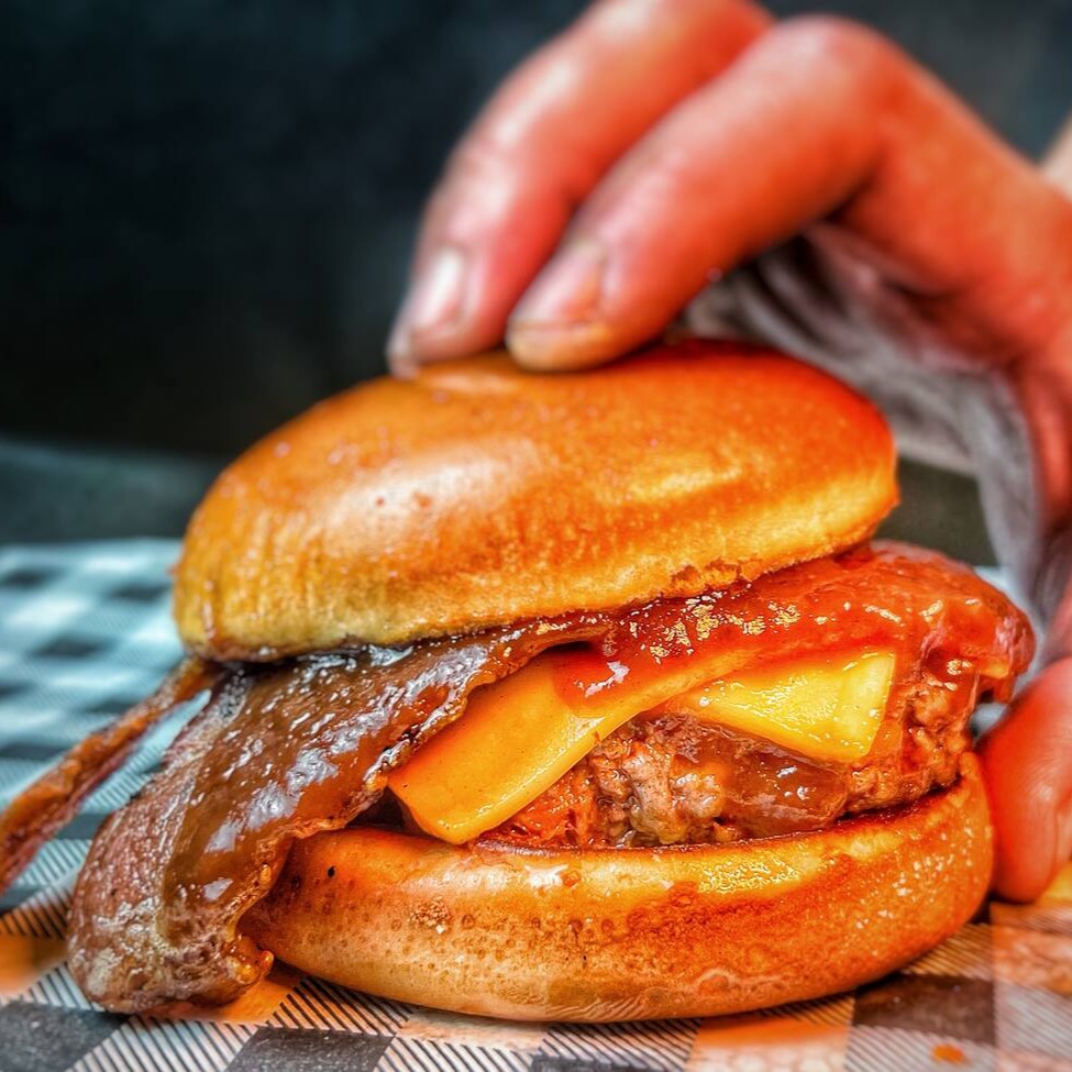 Pão brioche, carne 140g, fatia de queijo cheddar em dobro, bacon em fatia crocante, molho barbecue e cebola caramelizada.