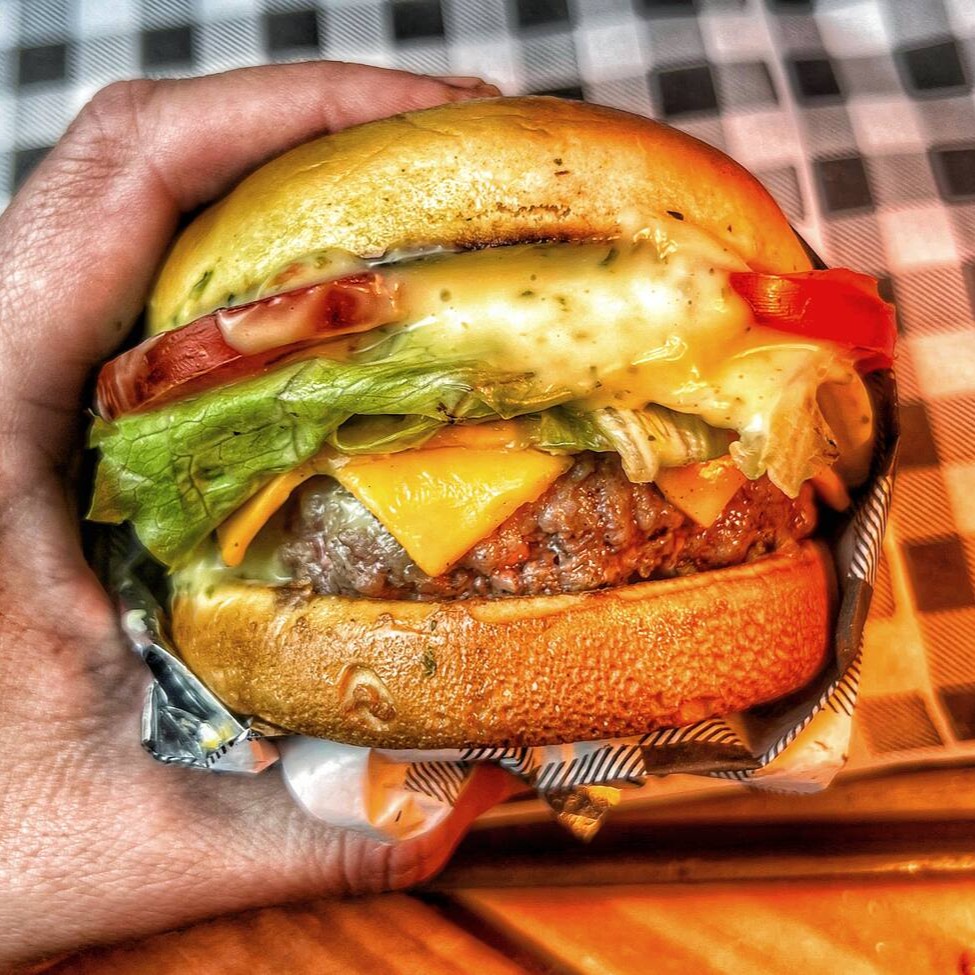 Pão brioche, carne 140g, fatia de queijo cheddar em dobro, maionese dos deuses.