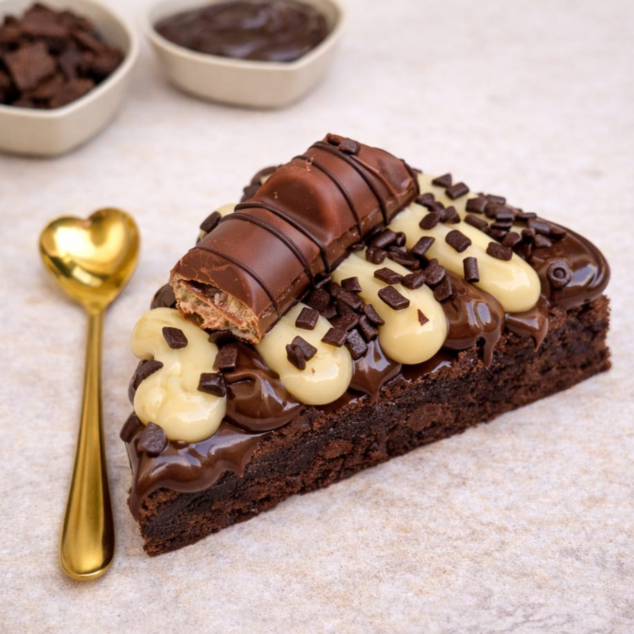 Base de brownie super macio coberta com brigadeiro cremoso de Ninho e uma generosa camada de Nutella. Uma combinação irresistível de chocolate com Ninho que derrete na boca em cada fatia. aprox:210g