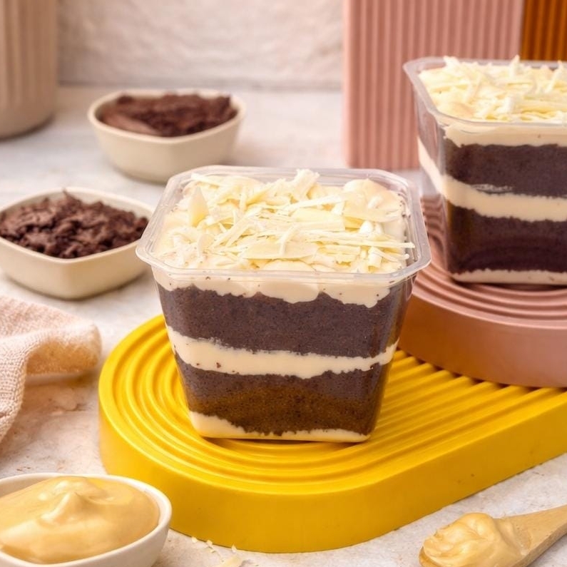 Imagina uma massa de chocolate bem fofinha e úmida, recheada com muuuito brigadeiro cremoso de Laka — aquele chocolate branco que a gente ama! Pra fechar, raspas de chocolate branco que derretem na boca e deixam tudo ainda mais gostoso.