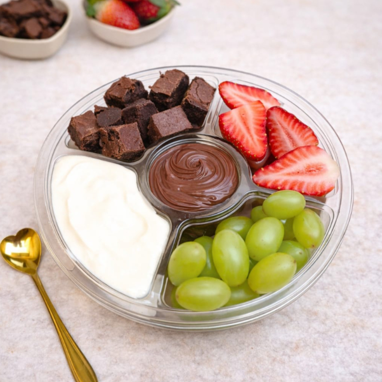 Uma combinação única de morangos frescos e uvas suculentas com pedaços macios de brownie de chocolate que derretem na boca, tudo isso e acompanhado da famosinha Nutella e do nosso aclamado creme de Ninho, essa combinação irresistível torna nosso fondue a escolha perfeita para você hoje!