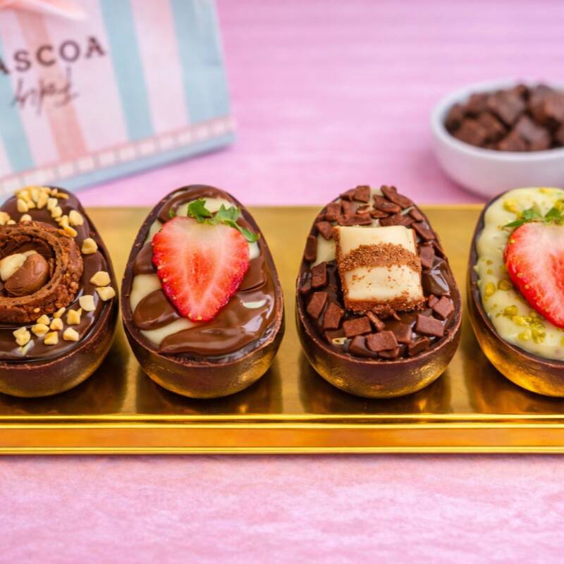 Nosso kit mais pedido da Páscoa com 4 mini ovos recheados, perfeito para provar diferentes sabores ou presentear alguém especial. Feitos com casca de chocolate e recheios cremosos, em combinações que são sucesso na Páscoa. Ferrero Roche | Kinder Bueno | Ninho com Nutella | Pistache (não realizamos alterações no kit.)