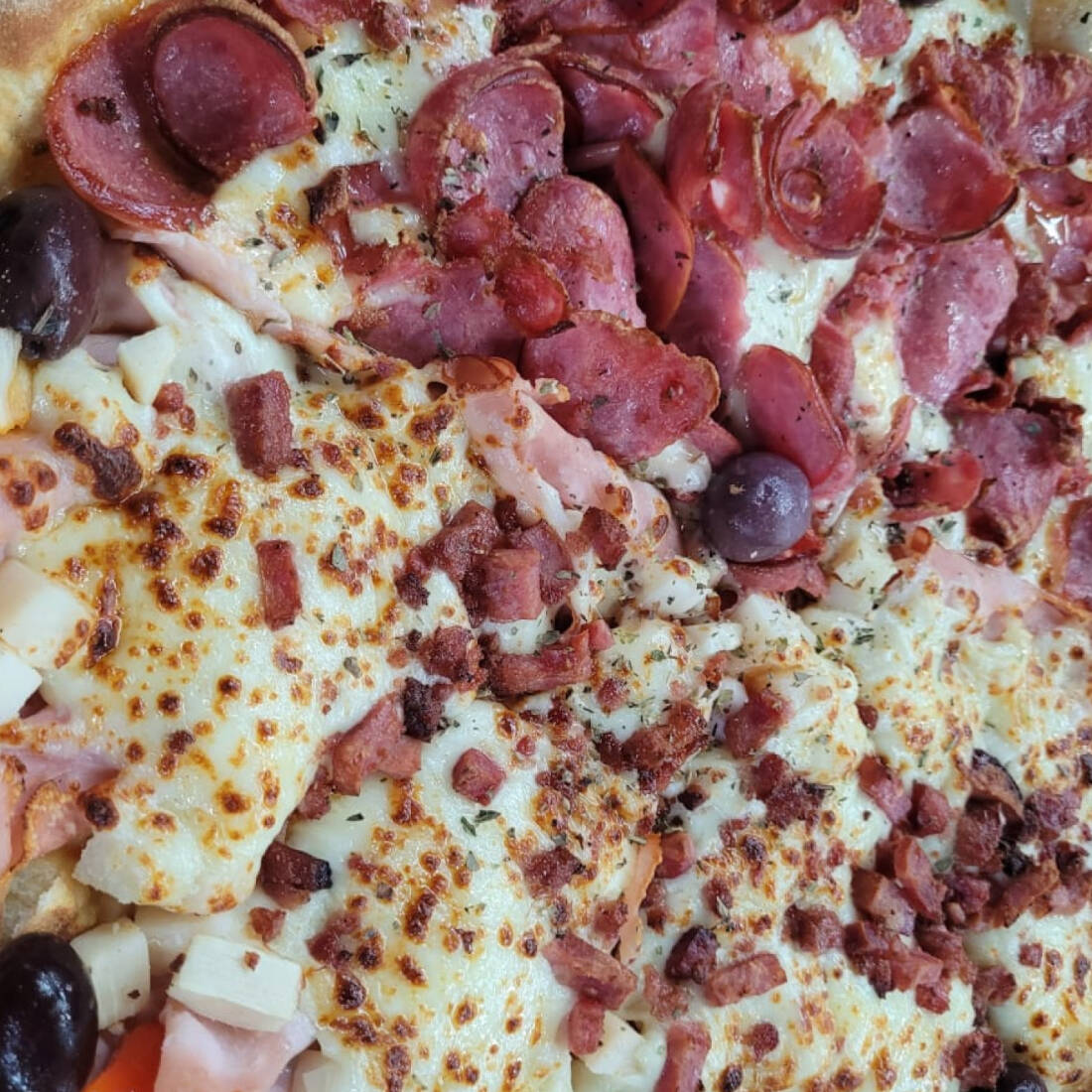 Pizza italiana de calabresa com base em muçarela, MUITO catupiry original e o sabor especial que só a Hant's sabe fazer. Acompanha azeitona premium sem caroço.