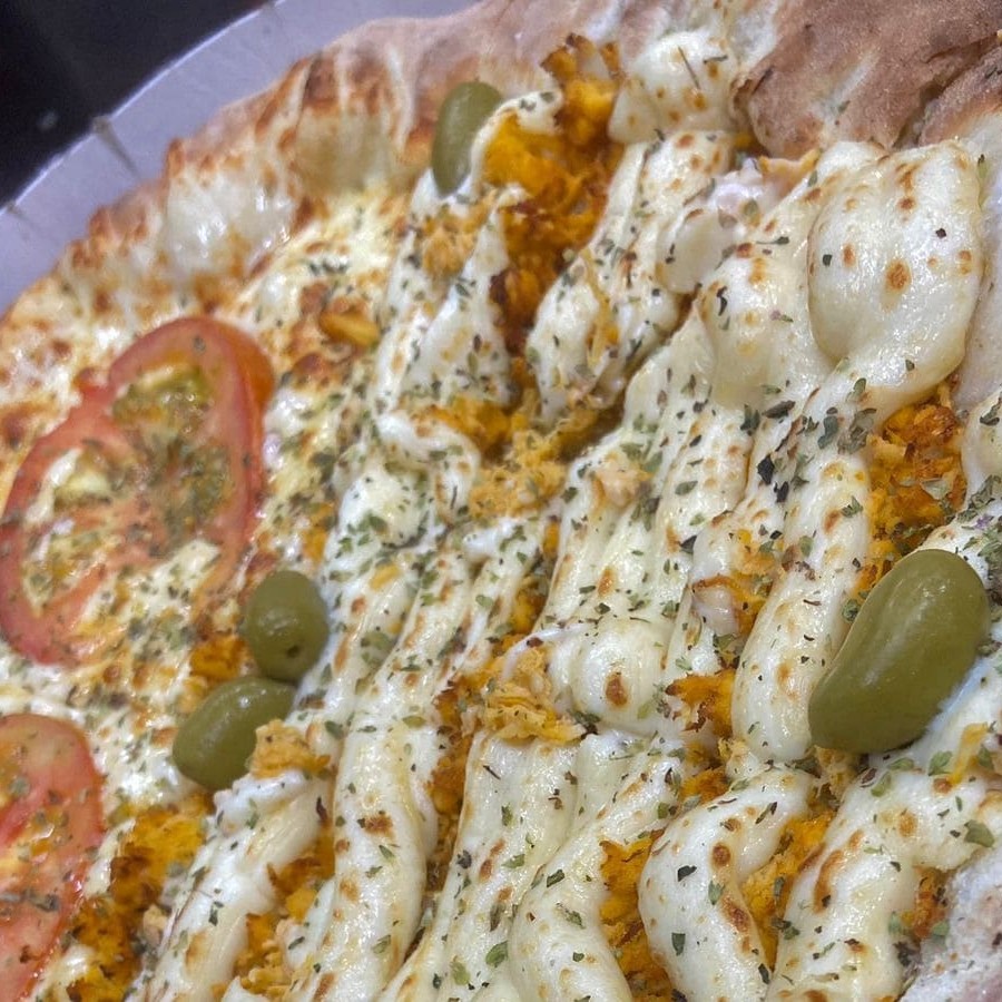 Pizza italiana de calabresa com base em muçarela, MUITO catupiry original e o sabor especial que só a Hant's sabe fazer. Acompanha azeitona premium sem caroço.
