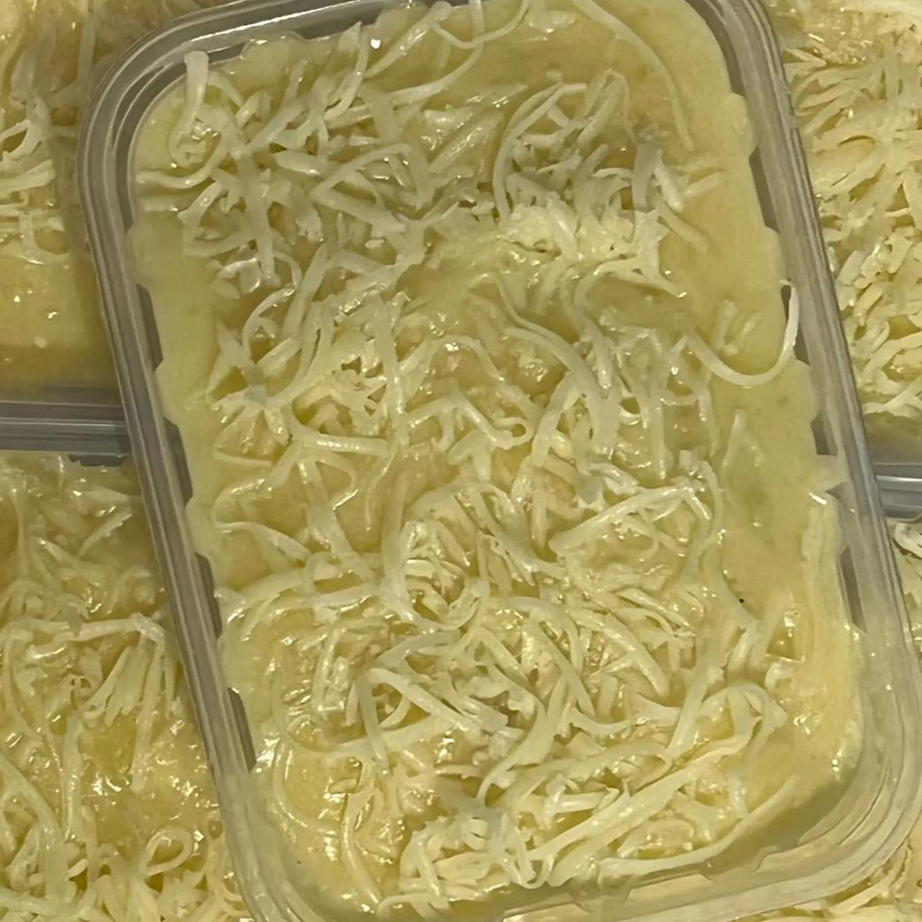 Delicioso escondidinho de mandioca com carne moída temperada e queijo derretido. Pronto para aquecer e saborear! Marmita congelada de 350g, perfeita para uma refeição prática e saborosa.