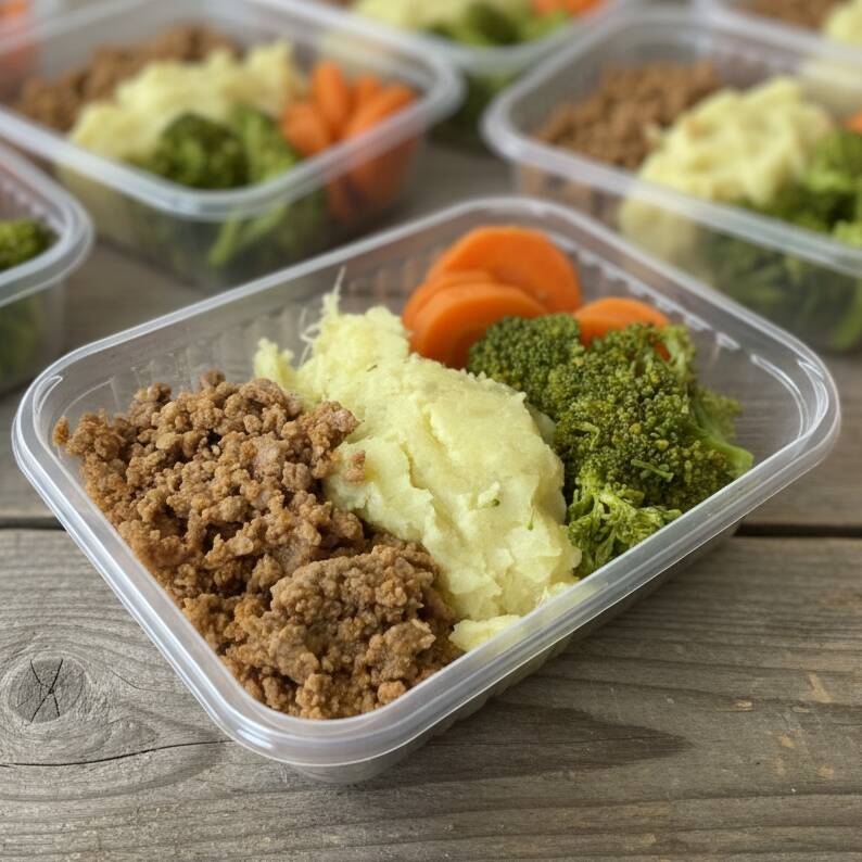 Marmita Fit: Purê De Batata-doce, Carne De Patinho Moída E Legu