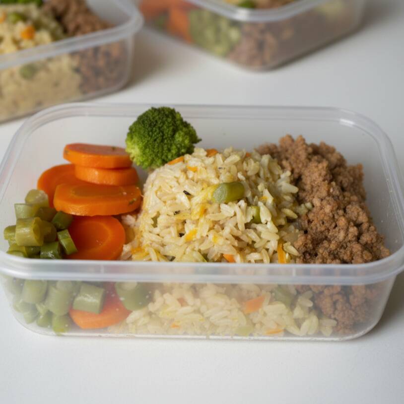 Marmitas Fit: Arroz Integral, Carne Moída E Legumes.