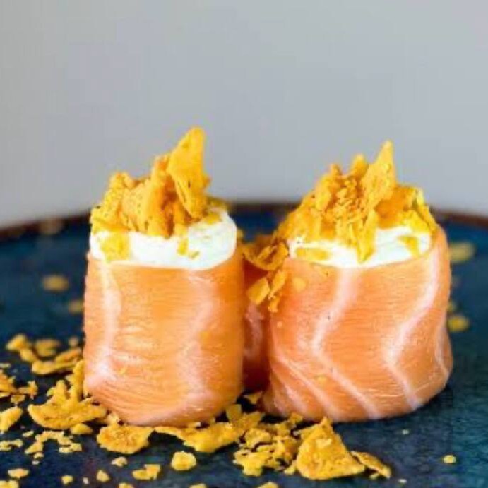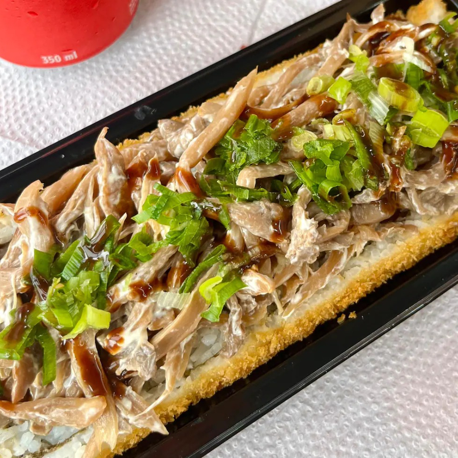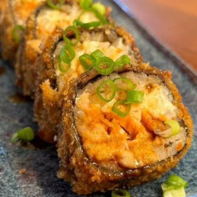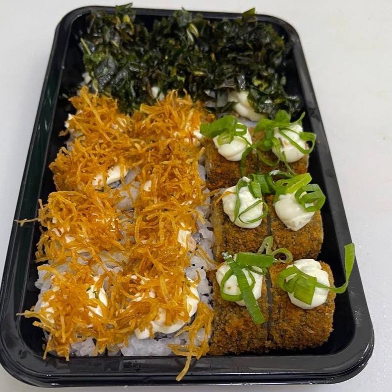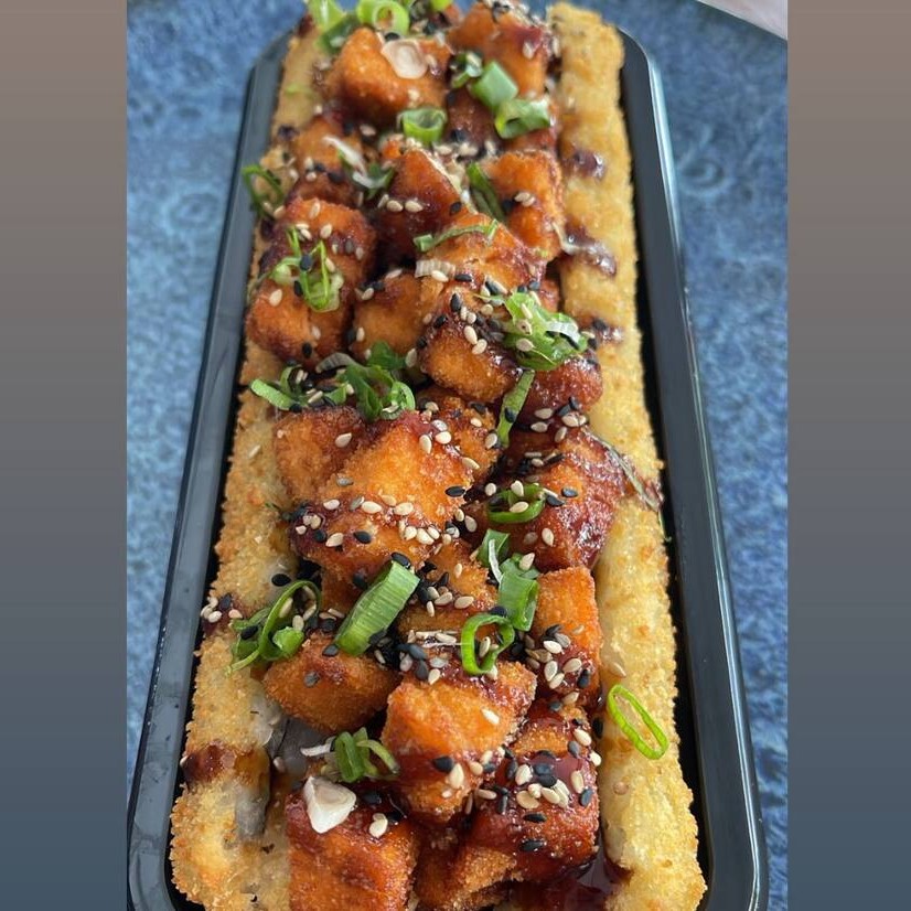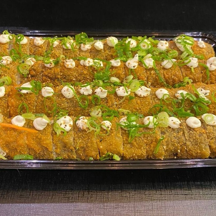 Delicioso “burger” de sushi com arroz, peixe fresco e sabores irresistíveis, crocante por fora e macio por dentro.
