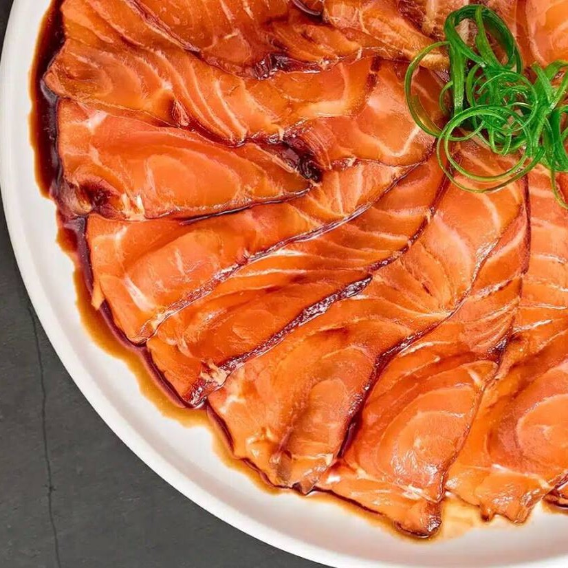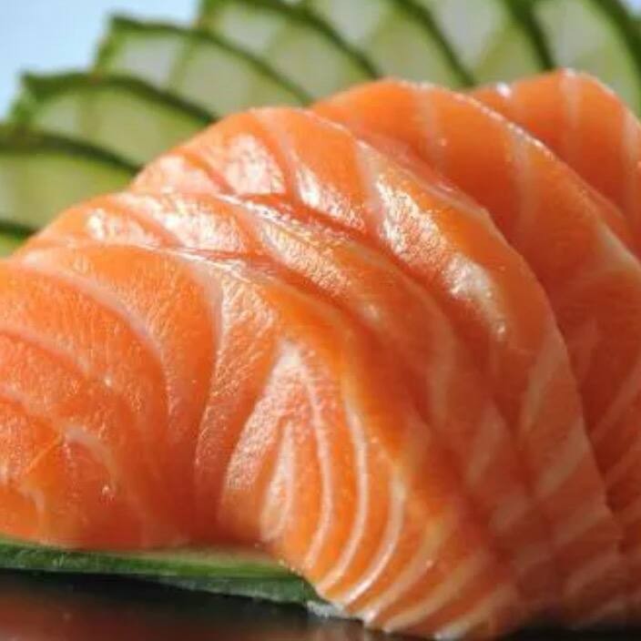 Cubos de salmão cru frescos, saborosos e irresistíveis! (Acompanha 1 Coca - Cola 200 Ml)