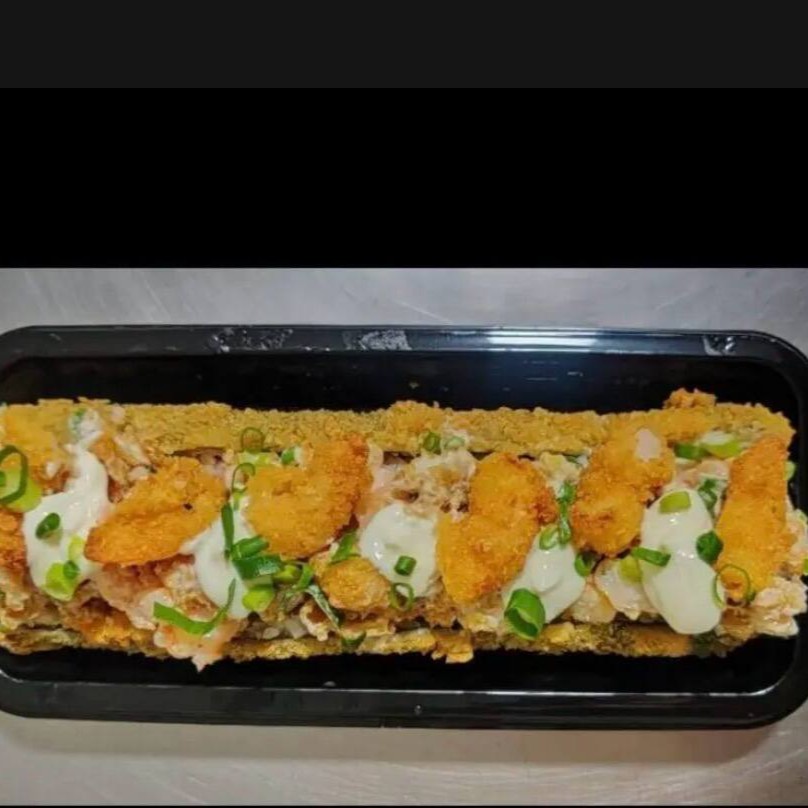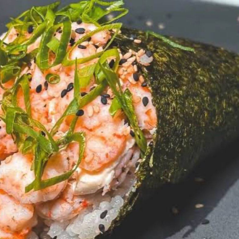 Delicioso “burger” de sushi com arroz, camarão suculento e sabores irresistíveis, crocante por fora e macio por dentro.
