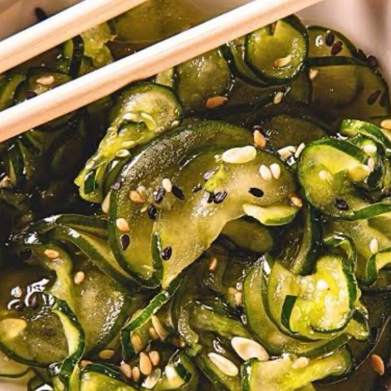 Tradicional salada japonesa de pepino japonês (kyuri) fatiado finamente, marinado em molho agridoce à base de vinagre de arroz. Finalizado com sementes de gergelim torrado. Uma entrada leve, crocante e refrescante. (300ml)