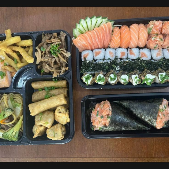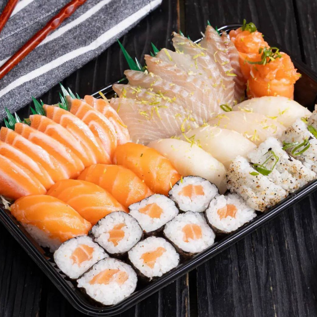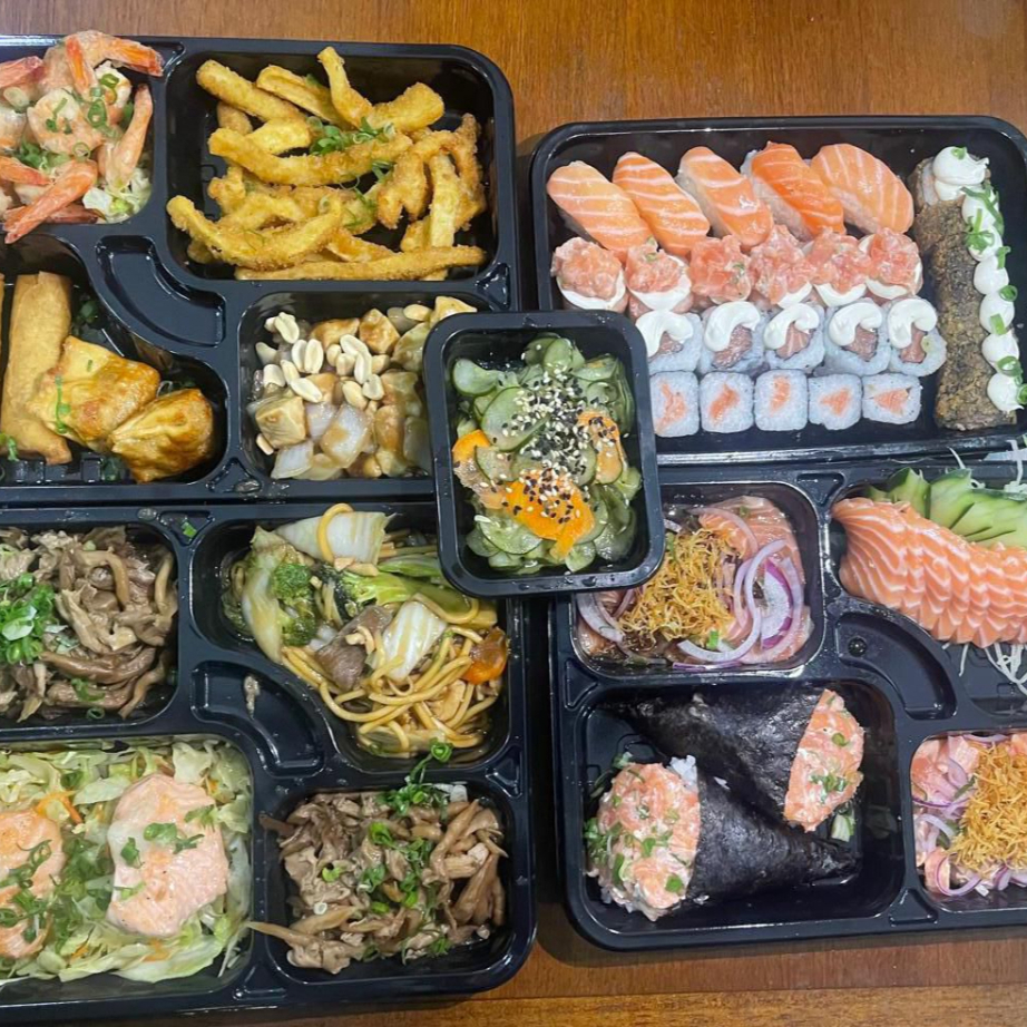 Pratos Frios: 2 Temakis À Sua Escolha, 10 Fatias De Sashimis, 6 Hot Holls Crocantes, 6 Jhou Salmão, 6 Niguiris Salmão, 6 Uramakis Salmão, 6 Hossomakis De Salmão, 4 Entradas (Carpaccio Salmão, Cevite Salmão, Sonomono).Pratos Quentes: 6 Camarões Empanado, 2 Pedaços De Salmão Grelhado, 2 Porções De Shimeji, 2 Guiosa Fritas, 2 Harumakis, 2 Pratos Quentes (1 Frango Xadrez E 1 Yakissoba Tradicional), Acompanha Sobremesa: 2 Paletas Paulistas
