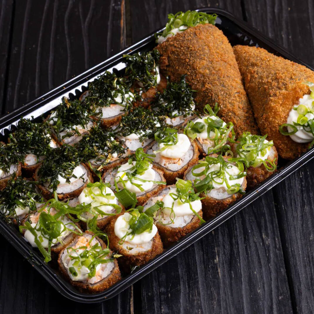 40 hot rolls crocantes e saborosos, acompanhados de 1 temaki recheado com ingredientes frescos. Ideal para compartilhar.