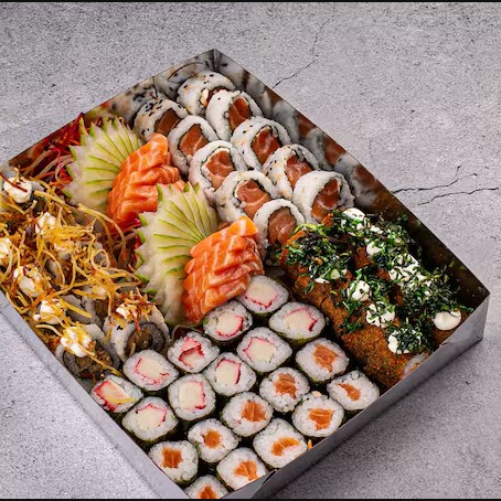 2 guioza 5 sashimi salmão 2 niguiri 2 jou salmão 6 Hot 1 shemeje 2 Harumaki queijos 2 Hosomaki de salmão