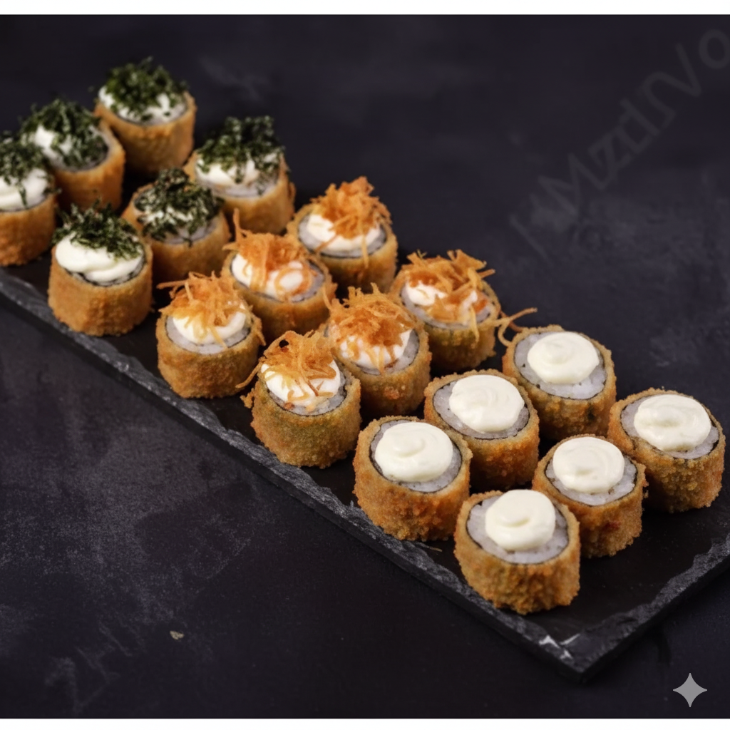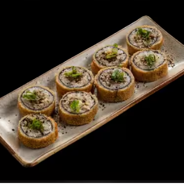 Uma versão maior e mais recheada do hot filadélfia, que é um sushi frito empanado com salmão fresco e cream cheese.