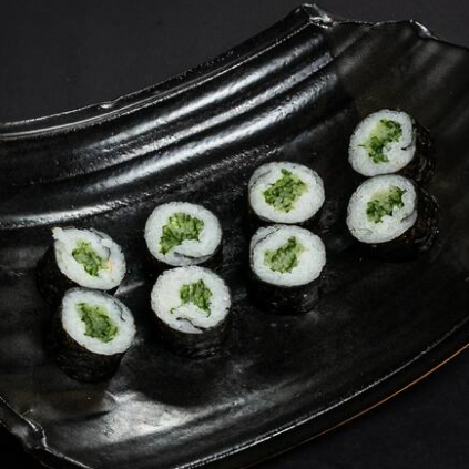 Temaki saboroso e com toque terroso, recheado com cogumelos shimeji frescos, salteados na manteiga e no shoyu.