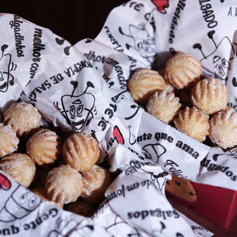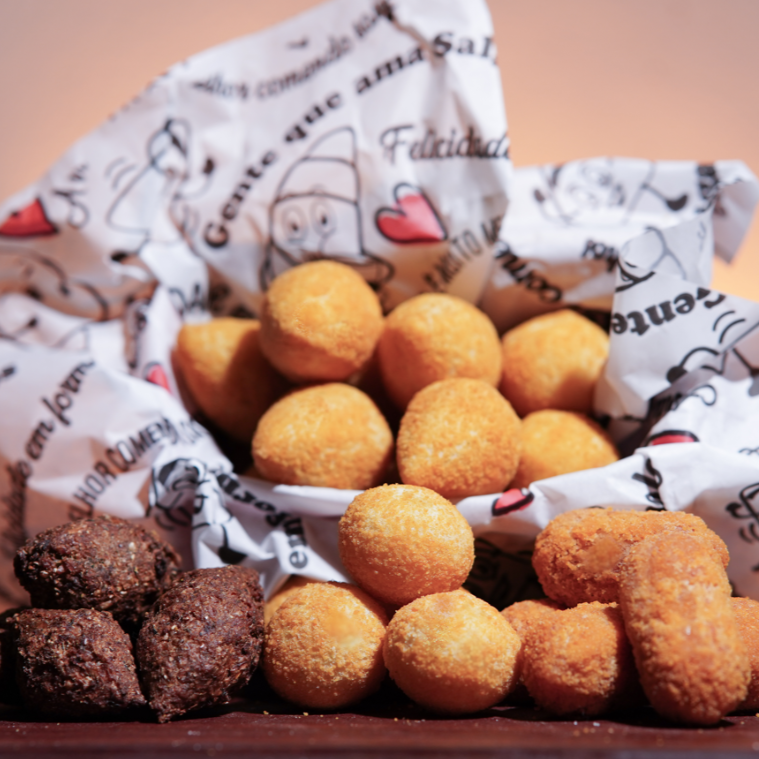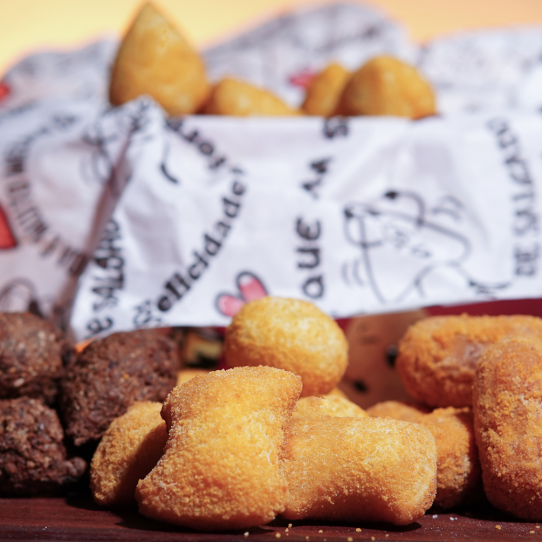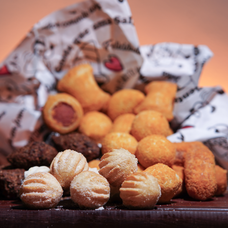 Sabores Variados Delicie-se com o sabor irresistível de 25 salgados fritos. Escolha o seu preferido das opções disponíveis e saboreie a incrível combinação de textura crocante e recheio suculento. E estamos confiantes de que você vai se apaixonar! Por favor, note que não realizamos alterações nos sabores ou quantidades.