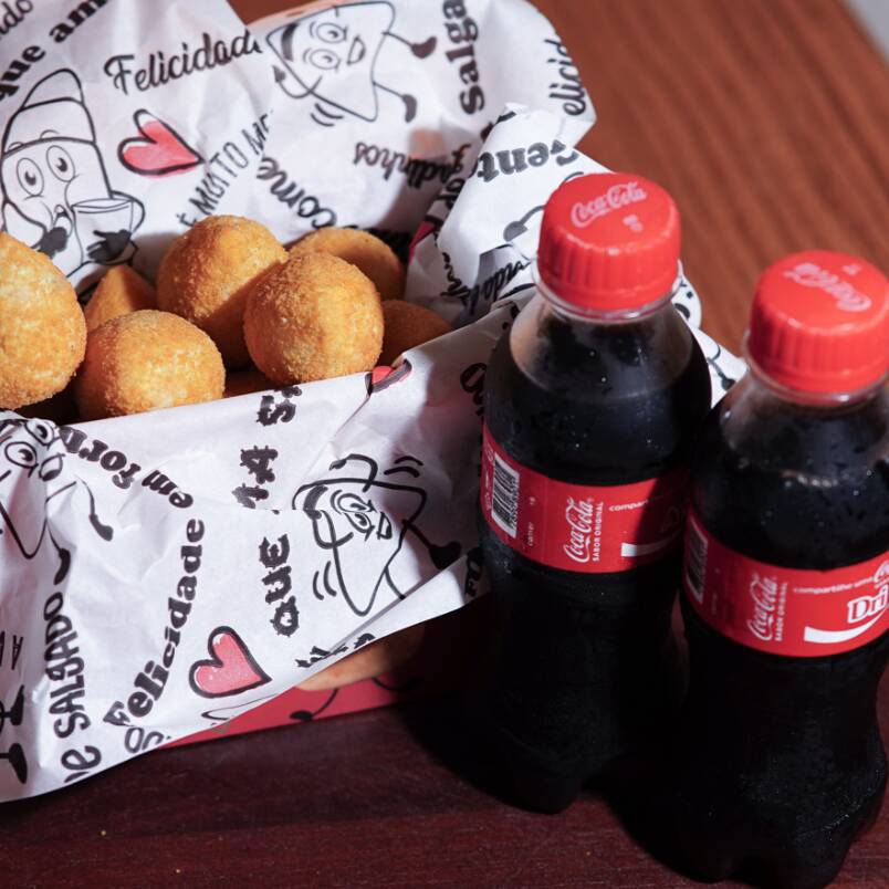 Sabores Variados Este Combo Promocional reúne 30 salgados fritos primorosamente preparados, apresentando uma crocância inigualável e um recheio suculento e irresistivelmente. Ideal para compartilhar com alguém especial ou saborear sozinho. O pacote é complementado por duas latas de Coca-Cola de 200ml, para proporcionar a combinação perfeita. Uma oferta imperdível! Por favor, note que não realizamos alterações em sabores e quantidades.