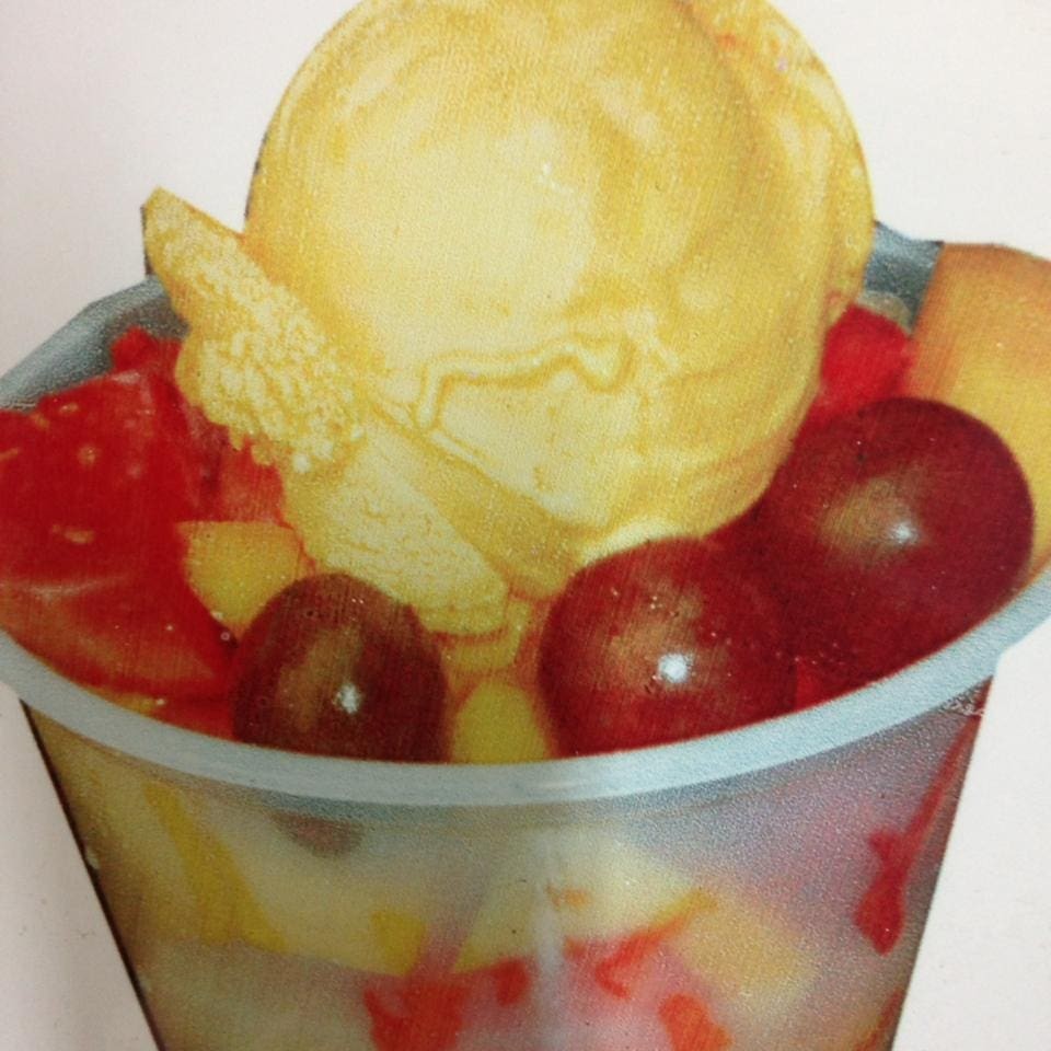 Salada de frutas com delicioso sorvete e cobertura + 1 cereal grátis. Está tudo incluso no valor.
