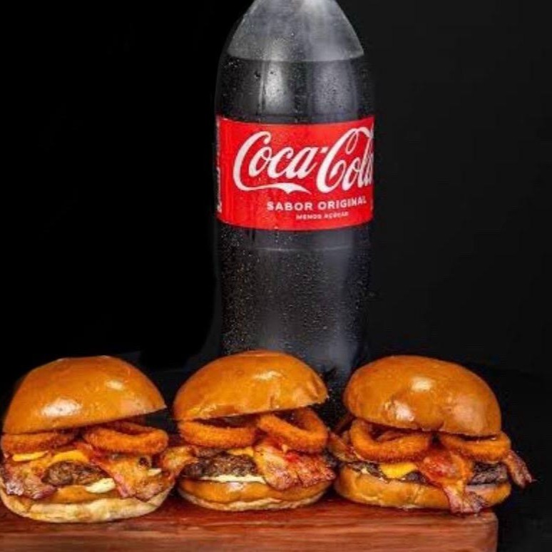 3 Gran Burger 1 Coca Cola Original 1,5l Gran Burger: Maionese especial, Catupiveg, Cheddar Veg, barbecue, mostarda, 2 anéis de cebola empanada (grande) e um delicioso disco de carne vegan goshen. (150)g