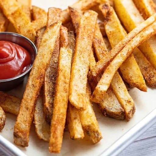 Fritas Especiarias Temperada com sal, limão em pó, páprica picante, páprica defumada, farinha de arroz integral, alho e cebola