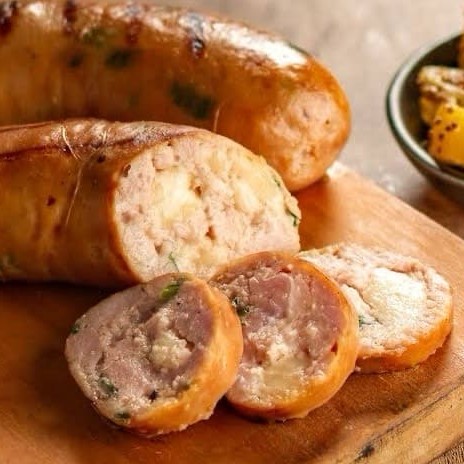 Deliciosa porção de linguiça tipo cuiabana, levemente picante, cortada em rodelas recheada com queijo vegano, alho e pimenta vermelha. *Acompanha cebola caramelizada