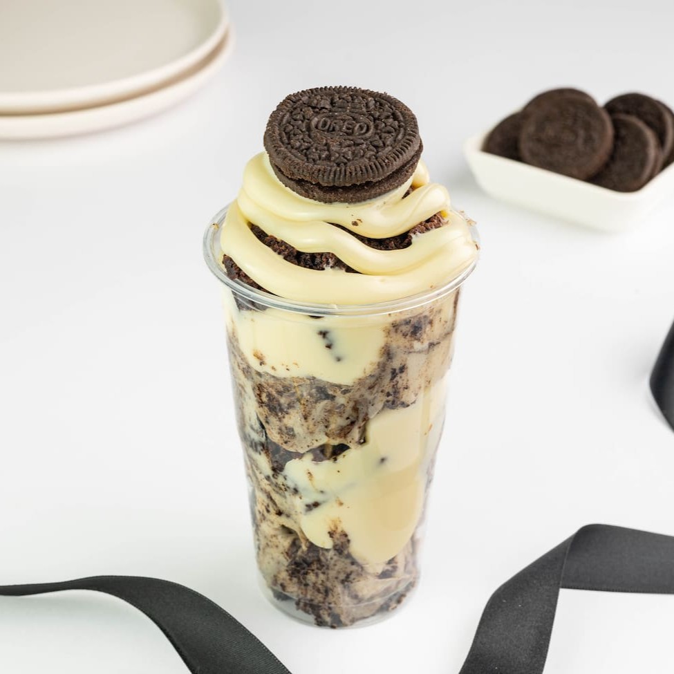 Bolo no pote com massa amanteigada e molhadinha, recheada com um delicioso brigadeiro de Oreo.