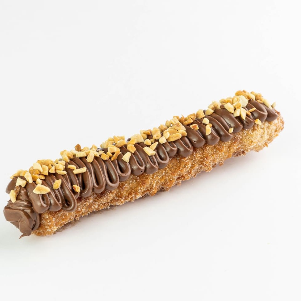 Churros super crocantes por fora e macios por dentro, com um irresistível recheio de Doce de Leite da Fazenda e amendoin triturado. Os churros são recheados por dentro e por cima, finalizados com um toque especial de açúcar com canela.