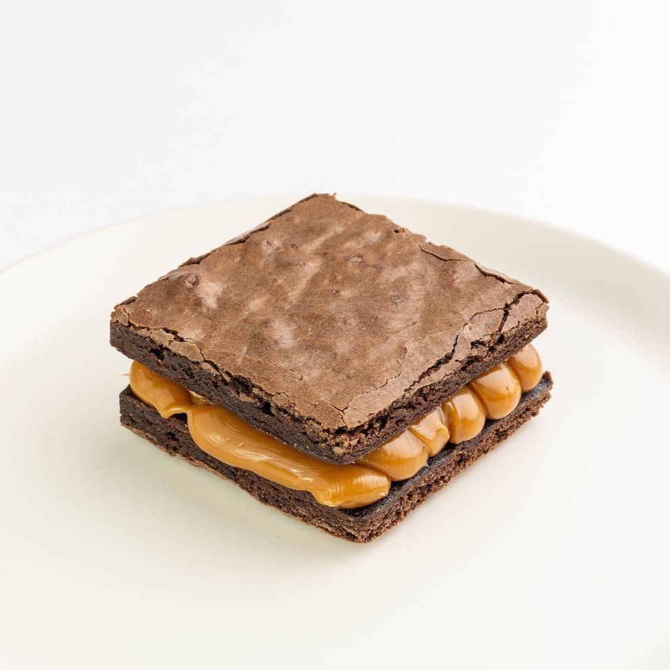 Brownie super chocolatudo e macio, recheado com o melhor doce de leite da fazenda.
